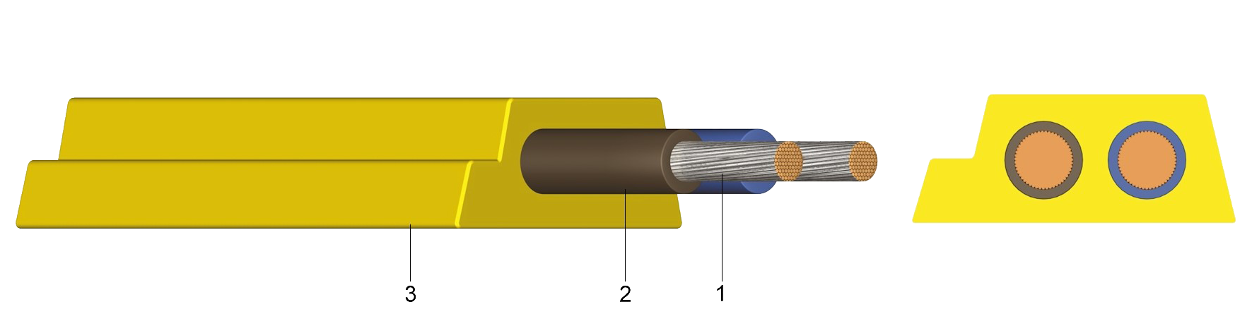 1 ..... rézvezető, ónozott, vékony elemi szálakból sodrott2 ..... érszigetelés TPE (kék és barna)