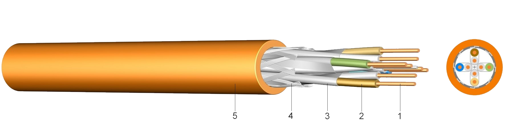 5 ..... PVC külső köpeny sárga vagy halogénmentes polimerkeverék narancs színű