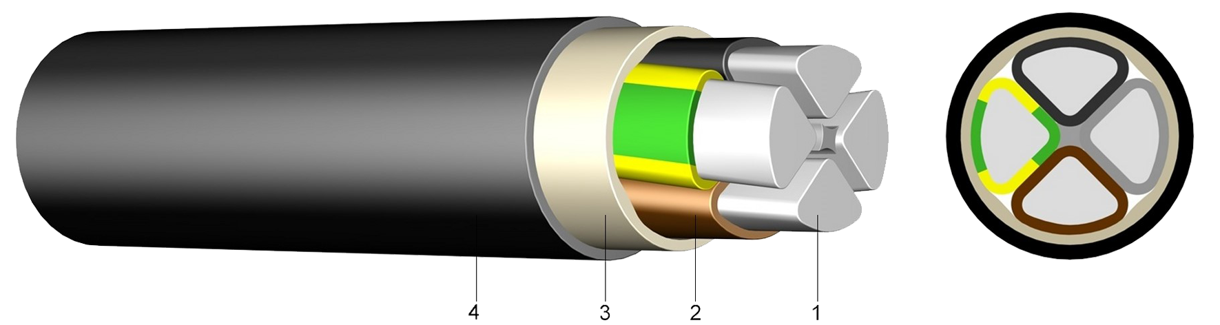 PVC szigetelésű erősáramú kábel alumínium vezetővel, PE külső köpennyel