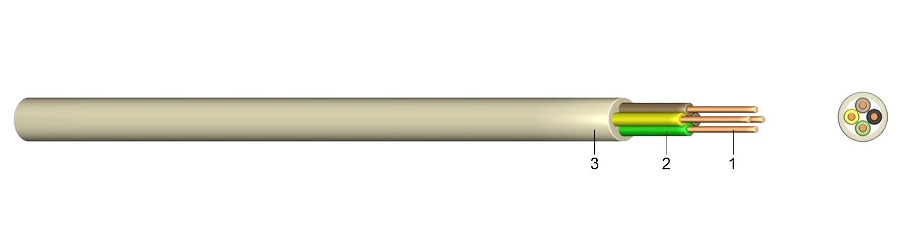 1 ..... rézvezető, csupasz, egyerű2 ..... PVC érszigetelés